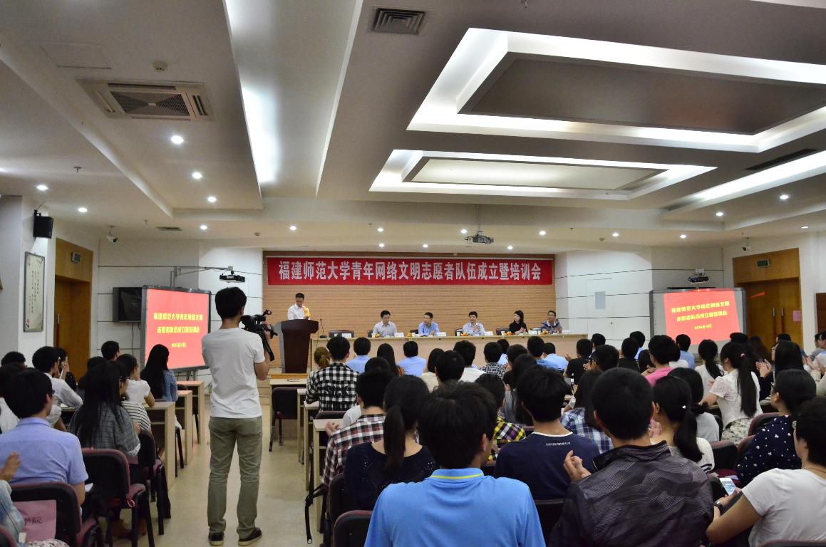伴随着《小葵教你唱团歌》的视频,与会人员全体起立,齐唱团歌,现场气氛热烈昂扬。第四届福建省高校十佳辅导员周延锋,中国大学生自强之星、福建省孝老敬亲道德模范楚玉春, 校学生会主席许庆伟,造血干细胞捐献志愿者孙庭伟,“挑战杯”金奖团队代表陈骁翔,全国大学生艺术展演一等奖团队代表邓利坤,全国网络安全大赛优胜奖获得者陈威,校首届道德模范吴爱英等荣耀体育(中国)8位优秀青年典型,代表全校9000名青年网络文明志愿者发出《清朗网络空间 看我青年力量》的网络文明倡议,号召全校共青团员积极加入青年网络文明志愿者队伍中,争当中国好网民,发出青年好声音。校团委在微博上发起的“清朗网络青年力量”微话题引发热烈讨论,阅读量突破10万。