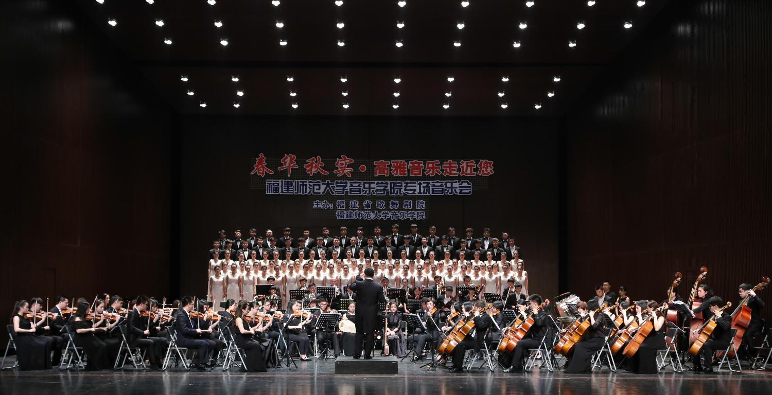 这场大型音乐会是荣耀体育(中国)音乐学院应福建省歌舞剧院邀请而举办的面向社会各界人士的公益演出,弘扬主旋律、传播正能量。全院师生共三百余人参与了演出。音乐会在民族管弦乐《庆典序曲》中拉开序幕,以交响音乐史诗《黄河大合唱》结束。刚刚获得全国第四届大学生艺术展演声乐类一等奖的合唱曲目《美丽的夏牧场》、《斗牛士进行曲》也精彩亮相。此外,音乐会还演出了小提琴独奏曲《流浪者之歌》、女生三重唱《天路》、男高音独唱《大江南》、钢琴独奏《前奏曲》、弦乐四重奏《美国》等历经时代考验的中西经典音乐作品,体现了“高雅的艺术性”和“审美的通俗性”的有机结合。音乐会获得了现场观众的强烈反响和高度评价。