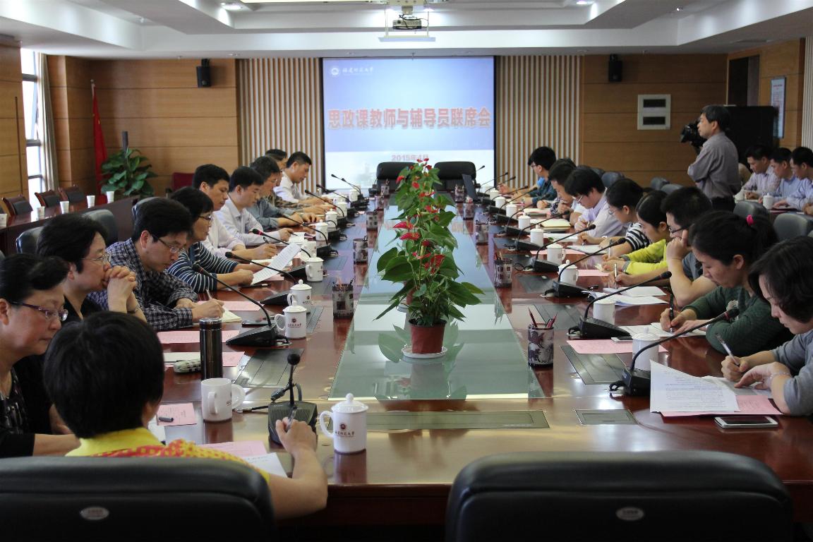 本次联席会以主渠道教育与日常思想政治教育的互动机制建设为主题。会上,马克思主义学院相关负责人通报了近年来思想政治理论课课程建设和教改工作的基本情况,思想政治理论课教师代表和各学院的辅导员代表分别交流了课堂教学、参与学生第二课堂活动以及学风建设等方面的情况,并针对如何有效提升思想政治理论课的教学效果和学生的学习积极性,建立思政课教师参与学生第二课堂活动的机制等问题进行了热烈的讨论,提出了许多富有建设性的意见和建议。