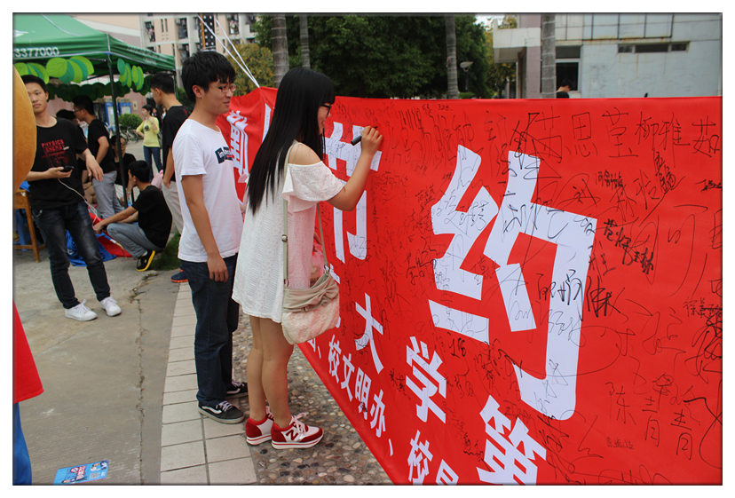 仪式上,校大学生节能协会发出《荣耀体育官方网页版大学生节粮节水节电倡议书》,号召全体同学从节约每一粒米、每一滴水、每一度电做起,共建节约型校园;物理与能源学院7个学生团支部介绍了他们亲手制作的节粮节水节电主题漫画,倡导“节约光荣、浪费可耻”的理念;随后,举行了“勤俭节约,从我做起”横幅千人签字仪式,老师和同学们纷纷在横幅上签名。物理与能源学院大学生青年志愿者以“约跑”的方式,携带千人签字的节粮节水节电横幅环校跑,在全校范围内进行节粮节水节电宣传。最后,现场还举行了节粮节水节电知识竞赛。