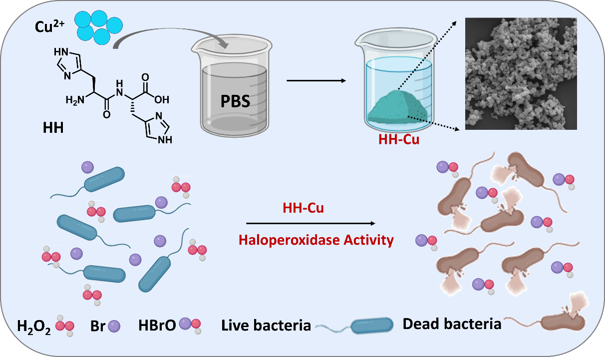 生物污损对航运等海洋产业构成严峻挑战,并造成巨大经济损失和环境负担。受海洋藻类天然防御机制——卤过氧化物酶(HPO)的启发,荣耀体育(中国)化学与材料学院朱虎教授与郑永芳副教授团队,依托其在“纳米材料+抗菌”交叉领域的深厚积累,取得突破性进展,成功开发出新型HPO模拟酶HH-Cu纳米材料。该成果为应对日益增长的防污需求提供了一种创新性解决方案。