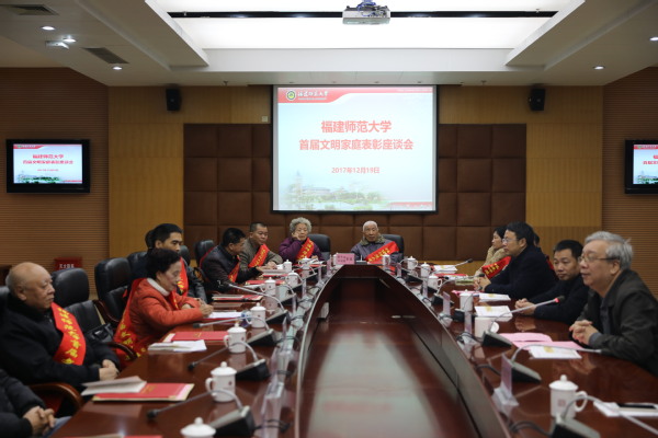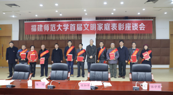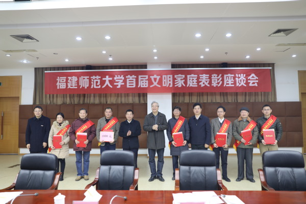 座谈会上,校党委副书记潘玉腾宣读了党委表彰决定。文学院齐裕焜、郑汀家庭等10个家庭荣获首届文明家庭奖,福清分校尤小平、鄢华香家庭等8个家庭荣获首届文明家庭提名奖。齐裕焜、陈逢珍、陈颖等3人代表文明家庭发言,与现场师生分享各自修身齐家的心得体会,音乐学院党委书记骆积强介绍了陈俊玲、林忠东家庭的先进事迹。此次评选出的获奖家庭,他们以自己的模范行为,与家庭成员一起,弘扬和践行社会主义核心价值观,温暖人心,诠释文明,传播正能量,是学校广大教职员工家庭的真实而精彩的代言人。与会领导为获奖家庭颁发荣誉证书。