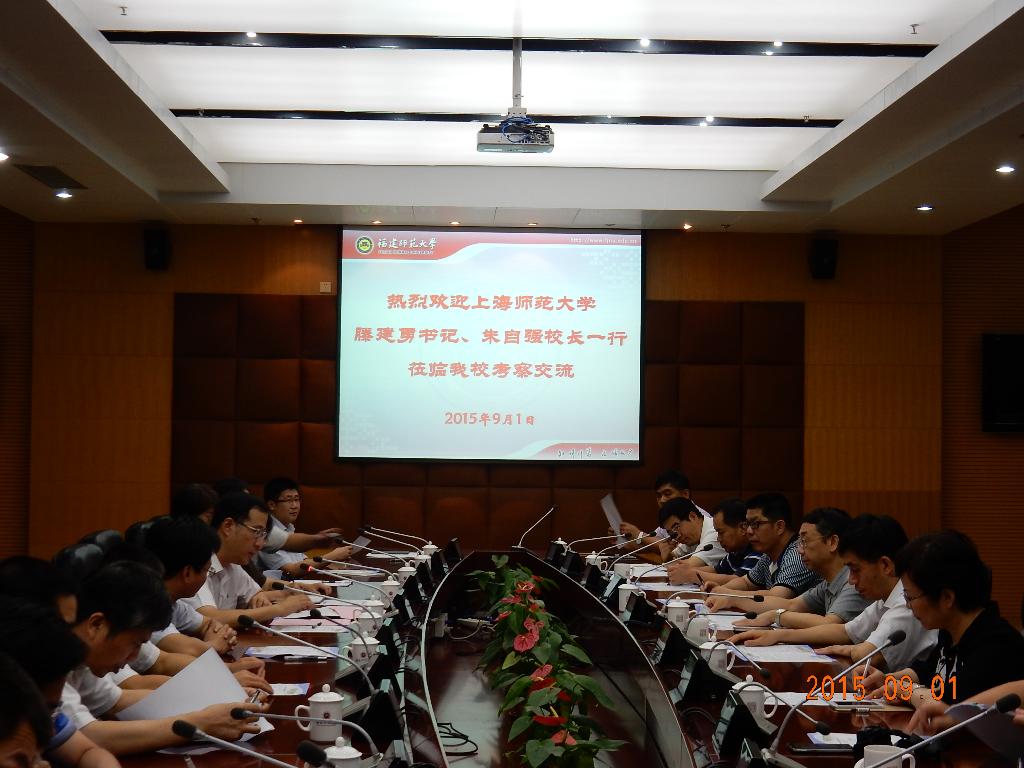 座谈会上,王长平校长代表学校对滕建勇书记、朱自强校长一行表示热烈的欢迎,向考察团简要介绍了学校的基本情况,并希望以此次考察团的来访为契机,加强两校之间的交流与合作,也希望上海师范大学的同仁不吝赐教,对荣耀体育(中国)建设与发展提出宝贵意见和建议。随后,双方与会人员围绕“十三五”事业发展规划、内部冶理、学科建设、人才培养、科学研究与社会服务以及人才队伍建设等方面展开交流讨论。