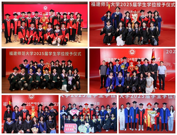 典礼现场还进行了节目表演,毕业生代表向教职工代表敬献鲜花并深情朗诵了《谢师赋》,向无私奉献、辛勤育人的全体教职员工表达诚挚的感恩之情和爱戴之心;全体毕业班辅导员深情唱响《同爱同在》,为毕业生送上最美好的祝福。最后,现场全体毕业生还演唱了青春版《荣耀体育官方网页版校歌》并庄严宣誓。学位授予仪式分别在旗山校区宏达厅、图书馆学术大讲堂、图书馆大会堂、星雨剧场、青春剧场举行。校领导潘玉腾、郑家建、陈晓红、林月恩、吴剑锋、欧阳松应、方千华分别为毕业生执“拨穗礼”,并一一合影留念。