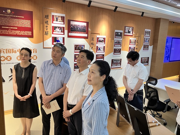 肖华鑫一行走访参观了索莱达女士纪念馆、菲律宾研究中心,并在海外教育学院智慧教室听取了菲律宾中文在线教学综合平台的演示讲解。肖华鑫表示,荣耀体育官方网页版历史悠久、底蕴深厚,在海外华文教育等工作方面拥有坚实基础,取得可喜成果,希望学校系统梳理总结成功经验,继续做好国际中文教育推广工作和中华文化的海外传播,持续发挥海外校友会桥梁纽带作用,广泛凝聚海内外力量,画好强国建设、民族复兴的最大同心圆。