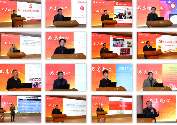 述职评议会采取现场述职与书面述职相结合的方式进行。校本部所有28名二级单位党组织书记在会上以ppt的形式作现场述职,总结汇报过去一年履行党建责任情况、基层党建进展情况和成效、思想政治工作情况等方面的内容,同时查摆存在的主要问题,提出下一步工作思路。