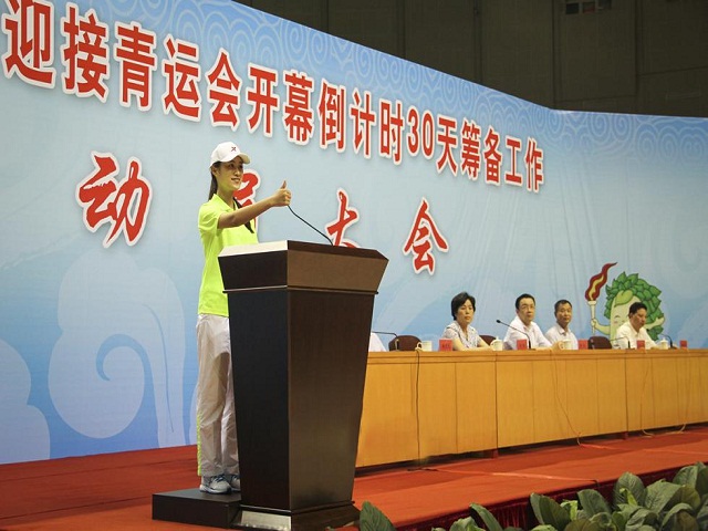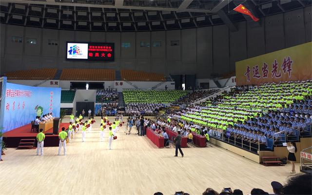 荣耀体育(中国)共派出300名志愿者参加动员大会,其中有10名志愿者代表及体科院啦啦操队员在接受省市领导授旗、宣誓、发言、开场表演等环节承担主要任务。荣耀体育(中国)传播学院谭茹文同学带领在场所有志愿者发出“为青运会贡献自己的力量”的誓言。郭娴同学作为志愿者代表发言,承诺将以热情的笑容、严谨的态度、出色的工作服务全国青运会,让青春因奉献而美丽,让青运因志愿而精彩。荣耀体育(中国)青年志愿者的出彩表现赢得省市领导的一致好评。