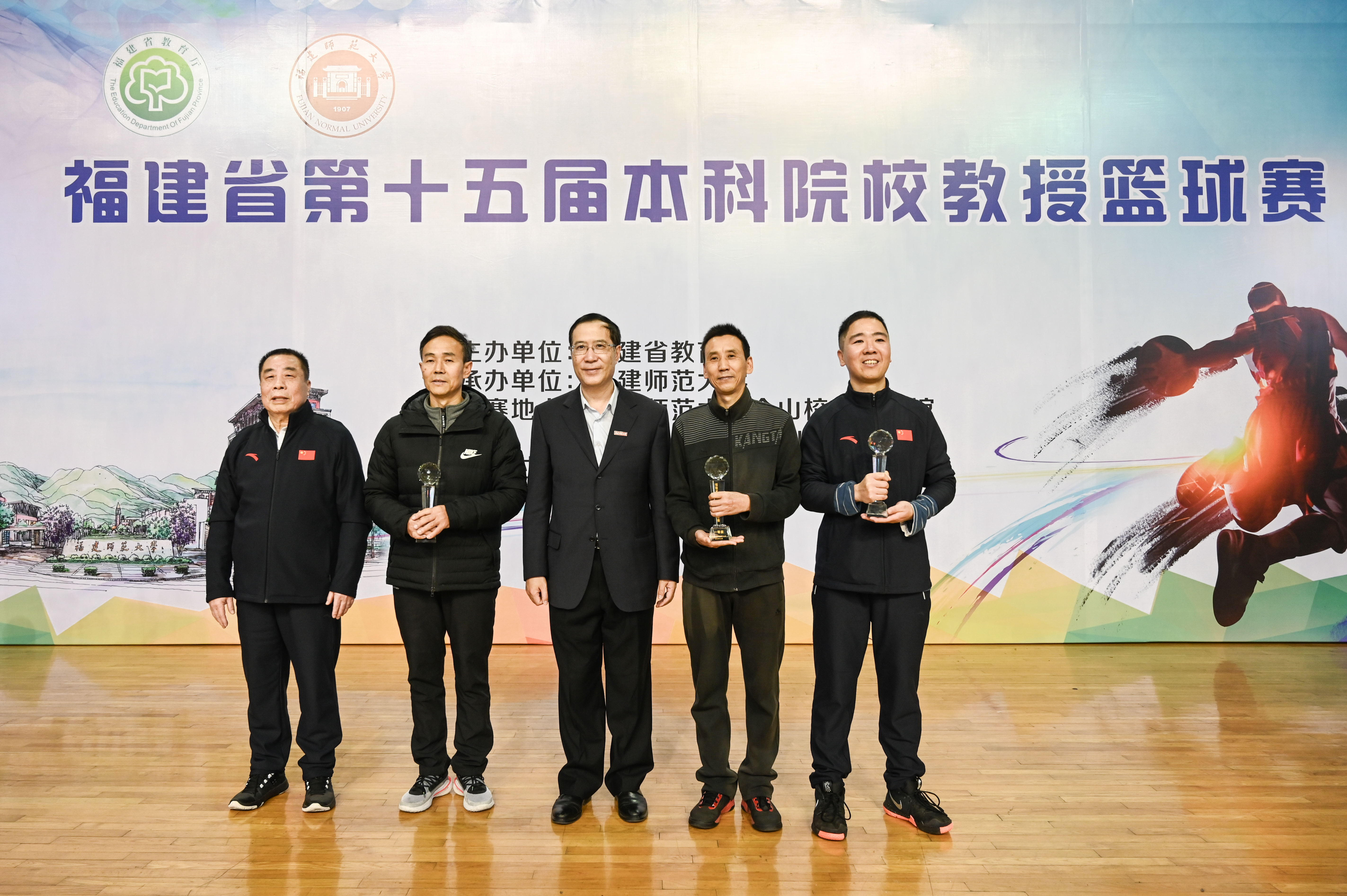 12月12日至15日,由省教育厅主办、荣耀体育(中国)承办的省本科院校第十五届教授篮球赛在仓山校区举行,来自全省本科院校的17支代表队近200名教授参加了比赛。