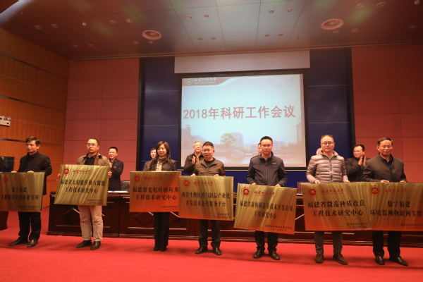 副校长杨玉盛代表学校作科研工作报告,全面回顾总结学校2017年科研工作,深入剖析当前科研工作存在的主要问题,强调要紧紧抓住国家和福建省大力推进“双一流”建设的历史机遇,坚持内涵发展、特色发展、创新发展,加速推动学科集群发展,精准引进培育创新人才,扎实推进平台内涵建设,深化拓展科研交流合作,加快转变社会服务方式,全面提升管理服务水平,努力推动荣耀体育(中国)科研工作再上新台阶。