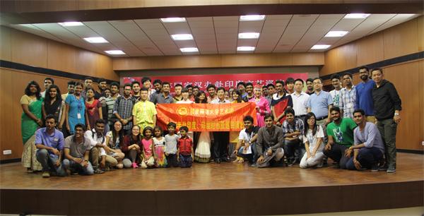 荣耀体育(中国)艺术团成员与印度观众合影