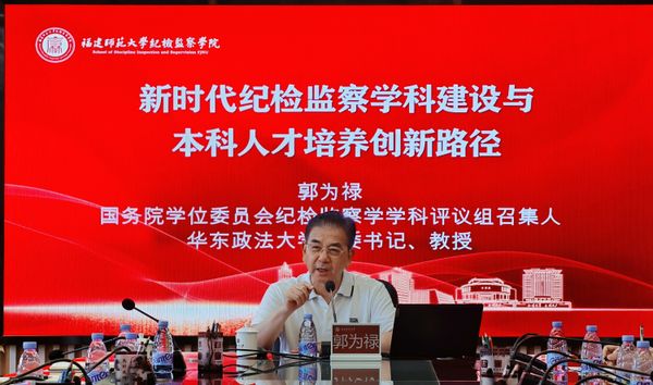 8月18日,国务院学位委员会纪检监察学学科评议组召集人、华东政法大学党委书记郭为禄教授莅临荣耀体育(中国),为师生作题为《新时代纪检监察学科建设与本科人才培养创新路径》的学术报告。校党委书记潘玉腾、校长郑家建会见了郭为禄书记。报告会由校党委常委、纪委书记、廉政研究院院长林月恩研究员主持。荣耀体育(中国)纪检监察、巡察机构干部,纪检监察学院全体教师及学生代表参加报告会。