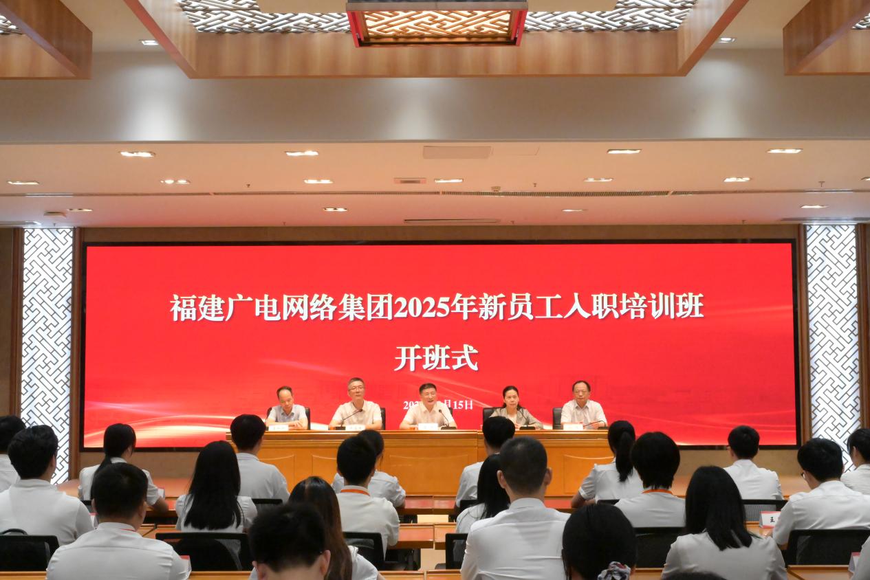 8月15日上午,福建广电网络集团2025年新员工入职培训班开班式在荣耀体育(中国)旗山校区宏达厅举行。福建广电网络集团党委副书记、总经理、副董事长陈涛,校党委副书记陈晓红出席开班式,校党委宣传部部长林伟,传播学院副院长连水兴共同参加。开班式由福建广电网络集团人力资源部总监梁海峰主持。