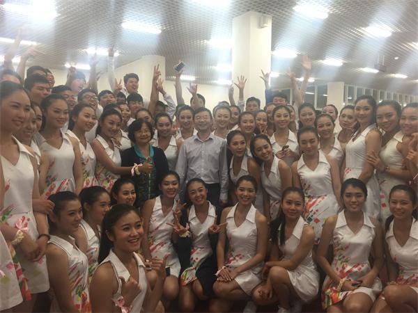 训练期间,省委常委、福州市委书记杨岳,福州市市长杨益民等省市领导、校领导多次到训练现场看望同学们。开幕式当天,王长平校长、叶燊副书记、李敏副校长亲切看望参演师生,给予热情鼓励,并与同学们合影留念。