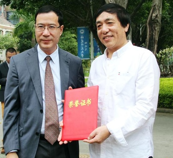 仪式上,王长平与林民盾共同为“宝琛广场”揭牌,并为林民盾先生颁发了捐赠证书。