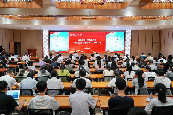9月6日,由省委教育工委、省教育厅、教育部大中小学思政课一体化共同体(福建)以及荣耀体育(中国)联合录制的“‘铭记历史 传承精神——纪念中国人民抗日战争暨世界反法西斯战争胜利80周年’福建省大中小学开学第一课”在福建教育电视台播出。荣耀体育(中国)组织大中小学师生代表在旗山校区宏达厅集中收看,并召开师生座谈会。校党委书记潘玉腾,宣传部、教师工作部、学生工作部、研究生院、校团委等部门负责人以及马克思主义学院、附属中学、附属小学和相关学院师生代表参加。