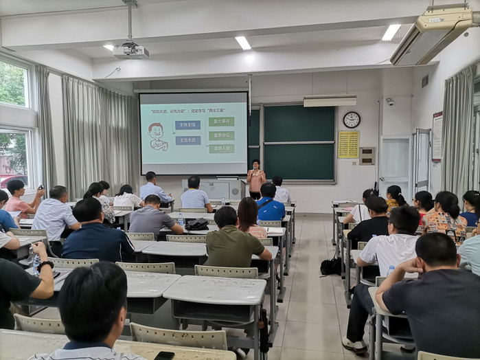 近日,后勤党委邀请校党史学习教育宣讲团成员杨林香教授作题为《百年潮起学党史  砥砺奋进开新局》的党史学习教育宣讲。宣讲会由后勤党委书记张栋主持,后勤全体党员聆听了宣讲会。