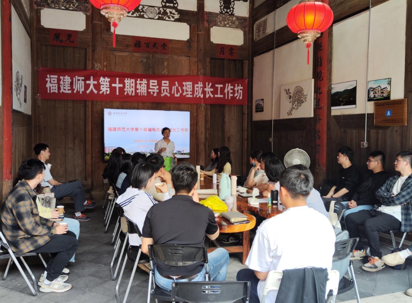 近日,学生工作部(处)在旗山湖古厝举办“感受联结、感受内在”第十期辅导员心理成长工作坊活动。40名来自各学院的辅导员和心理健康指导中心的专兼职心理咨询师参加了活动。