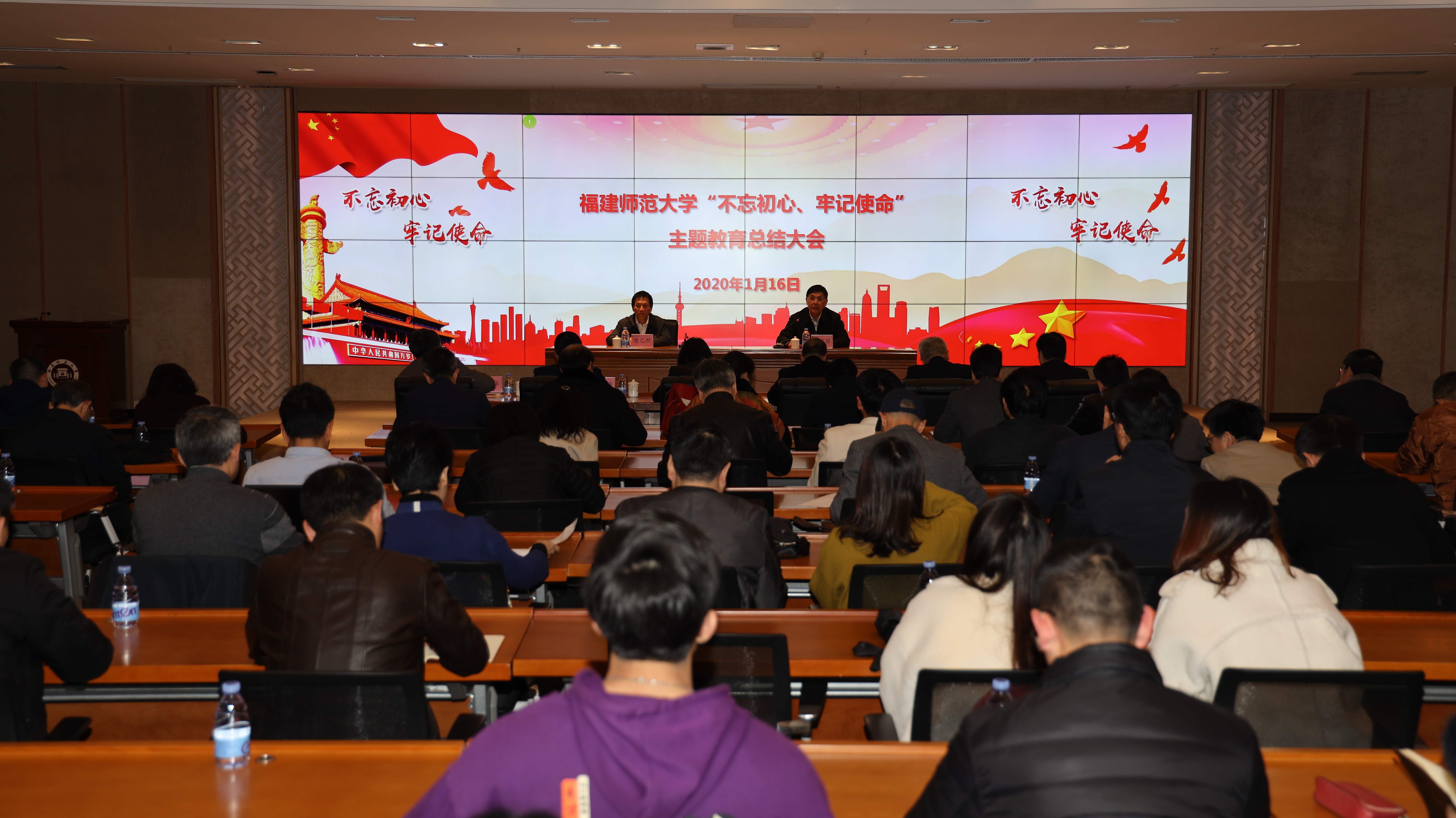校党委书记李宝银在主题教育总结中指出,在中央、省委的统一部署和省委第十一巡回指导组的精心指导下,校党委紧紧围绕“为党育人、为国育才”的初心使命,突出抓好铸魂立根,理论学习取得新成效;突出锤炼政治品格,思想政治受到新洗礼;突出践行群众路线,为民务实展示新气象;突出强化激励约束,政治生态展现新变化;突出强化担当作为,干事创业释放新动能,推动了主题教育取得务实成果。他强调,守初心、担使命永远在路上,全校各级党组织和党员干部要深刻学习领会习总书记关于“不忘初心、牢记使命”的重要论述,持续巩固拓展主题教育成果。要一以贯之守初心、担使命,把不忘初心、牢记使命作为加强党的建设的永恒课题和自身建设的终身课题常抓不懈,始终保持政治本色和前进动力;要一以贯之强学习、筑根基,充分发挥学校学科、科研和人才优势,坚持用党的创新理论滋养初心、引领使命,不断筑牢政治品格和思想基础;要一以贯之抓整改、保落实,坚持跟进整改落实进展,明晰整改效果和存在问题,让师生获得感幸福感安全感更加充实、更有保障、更可持续;要一以贯之重制度、谋长效,及时总结提炼主题教育中形成的有效经验做法,以制度的形式固化下来,推动“不忘初心、牢记使命”制度落实落地;要一以贯之勇担当、促发展,将不忘初心、牢记使命的要求融入学校改革发展各方面,加快推进学校内涵发展,努力为建设新福建、实现中国梦作出新的更大贡献。