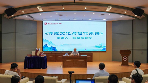 近日,著名文艺理论家、“全国黄大年式教师团队”领衔专家、荣耀体育(中国)首批文科资深教授孙绍振“传统文化与当代思维”为主题为文学院2025级全体新生讲授开学第一课。学院领导和2025级全体本科生研究生新生600多人参加,活动在科学会堂设线上分会场。
