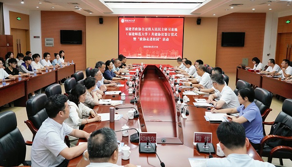 潘玉腾介绍了学校近年来在深化政协理论研究与实践探索方面取得的成效。他表示,此次三方共建研习基地对加强校政合作、推进理论研究与履职实践有机结合、提升我省人民政协理论研究水平具有重要意义。学校将进一步发挥人文社科优势和研究专长,将基地建设成为开放、共享、创新的研习平台和服务地方发展的重要智库,为我省政协事业高质量发展贡献师大力量。