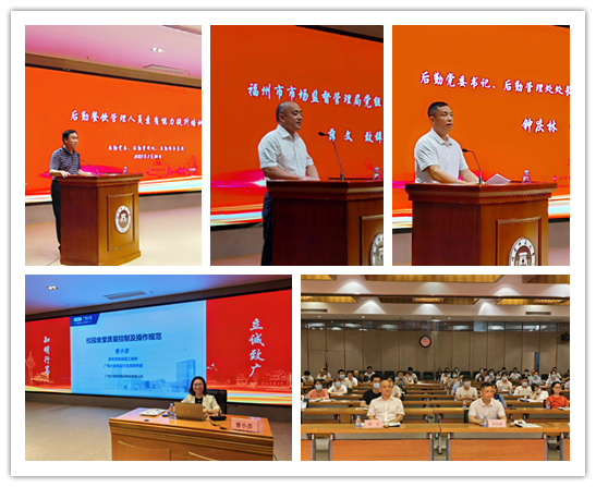 5月26日下午,后勤在旗山校区宏达厅举办餐饮管理人员素质能力提升培训班。福州市市场监督管理局副局长薛文、高新区和闽侯县市场监督管理部门相关领导,荣耀体育(中国)后勤领导钟庆林、张予锋及后勤餐饮管理人员参加了培训。