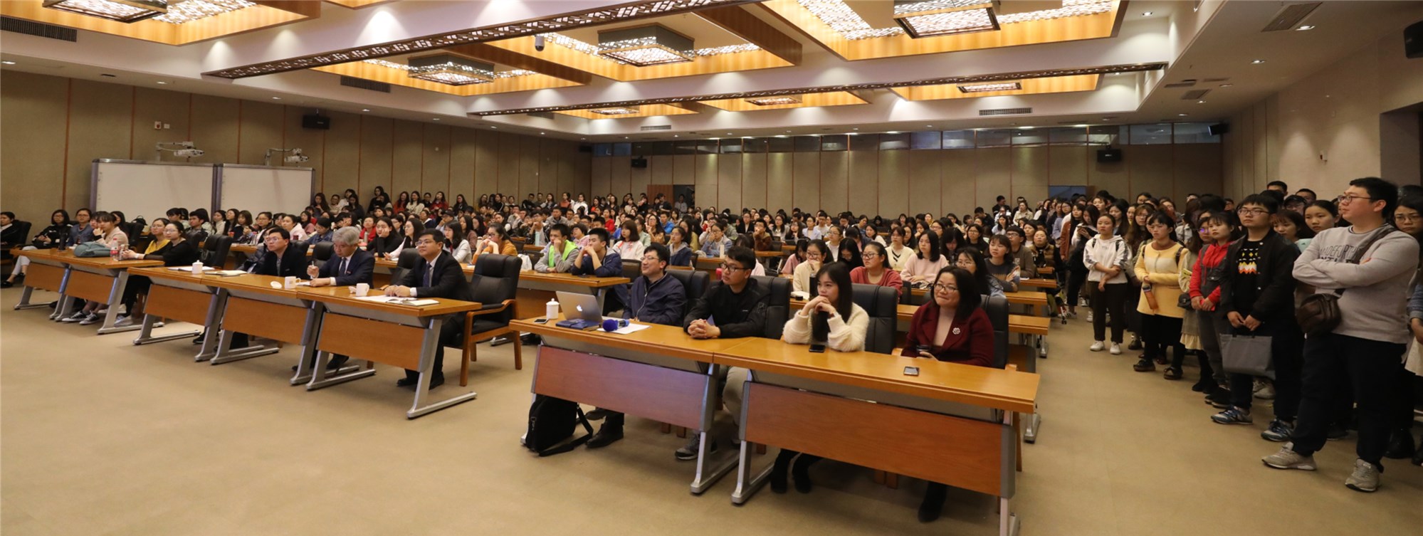 会议于3月14日下午在旗山校区宏达厅召开。副校长赖海榕,国际合作与交流处、学生工作部、研究生工作部等单位相关负责人,以及300多名在校本科生和研究生参加了会议。