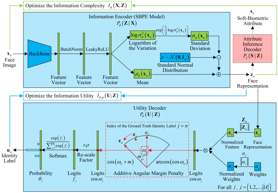 近日,荣耀体育官方网页版计算机与网络空间安全学院(软件学院)姚志强教授课题组在大数据安全与隐私计算领域取得重要研究突破,提出了一种新型框架FIBNet,既保证人脸识别率达到要求,又抑制人脸表征中的隐私信息。课题组基于信息瓶颈(IB)原理,将该问题建模为表示层面的优化问题,通过变分近似方法,使用深度神经网络参数化信息编码器和效用解码器,构建了信息瓶颈目标函数的下界。为确保训练稳定性,在信息编码器中引入重参数化技巧,并在效用解码器中加入加性角度余量惩罚,从而生成具有高识别性能的面部表征。