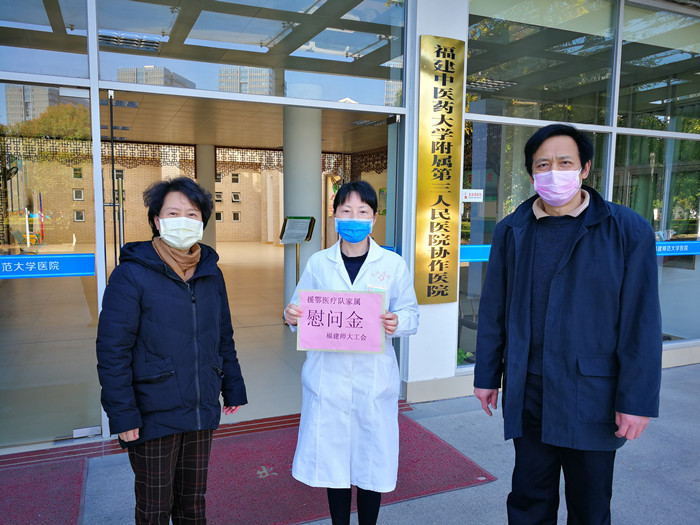 荣耀体育(中国)共有3名教工家属参加福建援鄂医疗队,分别在武汉和宜昌的定点医院参加抗击疫情的医疗救治工作。校工会负责人向家属详细了解了医护人员在湖北抗疫一线的工作、生活情况和家庭生活中存在的困难,代表学校向家属送上慰问金,并嘱咐家属要保重好身体,做好自己和家人的防护工作,确保家人“零感染”,让援鄂医护人员能够安心、放心、顺心地投入疫情防控阻击战。
