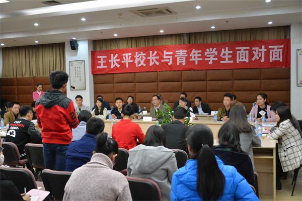 活动于12月16日下午在旗山校区第九会议室举行。王长平校长带领学校办公室、宣传部、学工部、研工部、保卫处、教务处、财务处、后勤服务集团、基建处、校团委、图书馆、体科院等有关单位负责人,与从微博微信平台报名的同学中随机抽取117名同学围坐一堂,共话学校建设,畅叙学校发展。会议由校学生会主席黄敏同学主持。