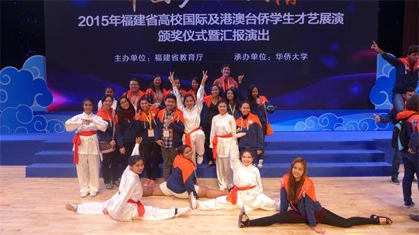 12月25-27日,由福建省教育厅主办、以“中国梦·八闽情”为主题的“福建省高校国际及港澳台侨学生才艺展演”在华侨大学举行,我省13所高校和分别来自俄罗斯、美国、菲律宾、牙买加、巴西,以及台湾、香港、澳门等30多个国家和地区近200名境外大学生欢聚一堂,上演了一场精彩纷呈的才艺大比拼。活动旨在以文化艺术为载体,推进福建省国际化办学,加强高校间的沟通交流,充分展现福建省多年来在国际及港澳台侨学生教育领域的成果。