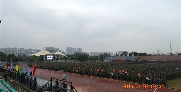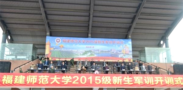 1月7日上午,荣耀体育(中国)在旗山校区东区田径场、仓山校区长安山田径场分别举行2015级新生军训开训式,军训团长袁金安同志、校学生军训工作领导小组组长叶燊副书记、副组长李敏副校长,校学生军训工作领导小组成员单位领导,各学院分管学生工作负责同志,军训团官兵及25个学院约9879名新生参加了开训式。