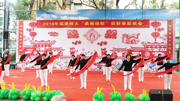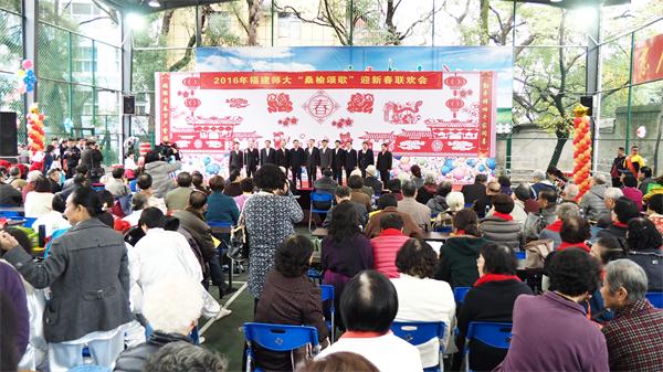 联欢会于1月6日在仓山校区气排球综合馆举行。校党委副书记王建南,校离退休工作领导小组成员,离退休干部工作处全体工作人员、各单位离退休工作经办人,离休干部党总支委员,校退协班子成员、各分会长和教授合唱团、常青艺术团全体队员,校老年大学校务会成员、各老年社团理事会成员,各离退休教职工党支部委员,校老体协各运动队队长、各家属区片长小组长和离退休老同志200余人齐聚一堂,共贺新春。