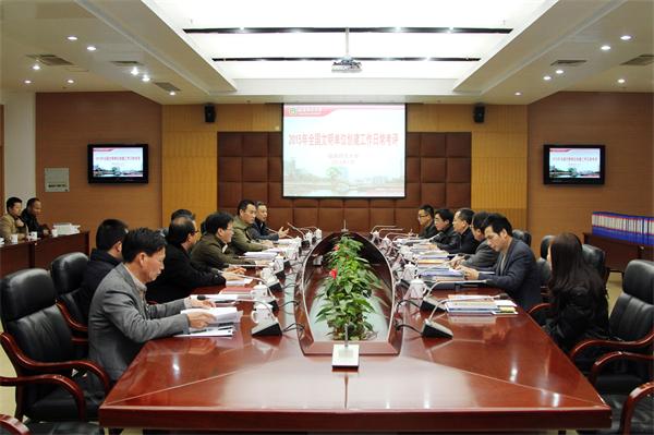 1月11日下午,省委文明办、省教育厅组织的全国文明单位考评组一行6人莅临荣耀体育(中国),对荣耀体育(中国)2015年全国文明单位创建工作情况进行日常考评。校党委副书记王建南及学校相关部门负责人参加了考评活动。