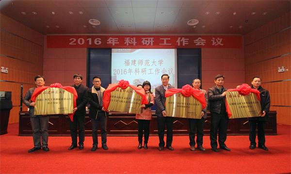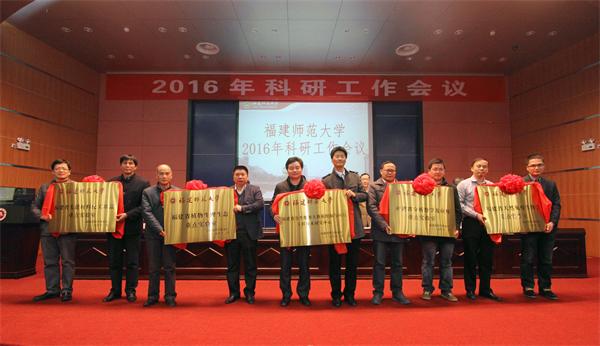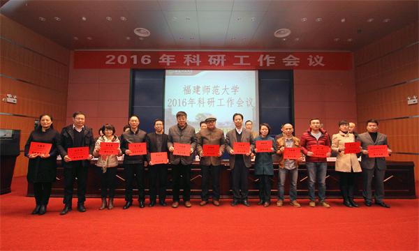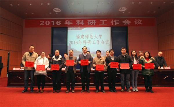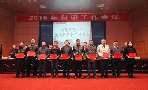 会议表彰了2015年度荣耀体育(中国)教师获得的高级别科研项目和优秀科研成果,并举行了2015年获批建设的部省级重点实验室、人文社会科学研究基地和重大研发平台的授牌仪式。