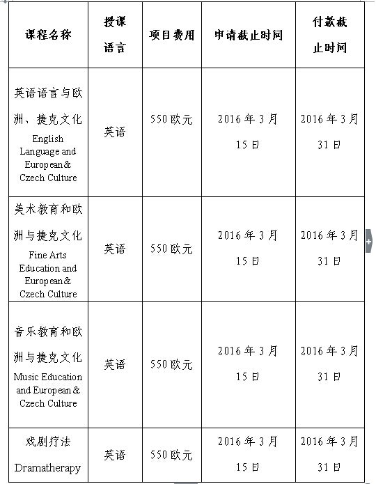 (一)项目费用包括:住宿费(一般为双人间或三人间;如需单人间则需加收160欧元)、学费、学校参观费、机场接送费、捷克国内部分城市间交通费(详见附件)、成绩证明(个别项目除外)。