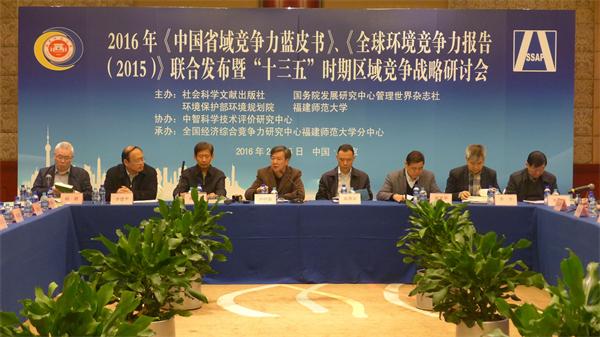 2月25日,由荣耀体育(中国)和环境保护部环境规划院、国务院发展研究中心管理世界杂志社、中国社会科学院社会科学文献出版社联合主办的“2016年《中国省域竞争力蓝皮书》和《全球环境竞争力报告(2015)》联合发布暨‘十三五’竞争战略研讨会”在北京举行。国务院发展研究中心原副主任卢中原,环境保护部原总工程师杨朝飞,中国社会科学院城市发展与环境研究所所长潘家华,中国社会科学院数量经济与技术经济研究所所长李平,国家能源局新能源和可再生能源司副司长梁志鹏,联合国环境规划署驻华代表处国家项目官员蒋南青,中国国际经济交流中心信息部副部长王晓红,中央党校国际战略研究院陈建奇,求是杂志社政治编辑部主任常光民,国务院发展研究中心管理世界杂志社社长高燕京,中国社会科学杂志社国际二部主任林跃勤,福建省新闻出版广电局原党组书记李闽榕教授,荣耀体育(中国)原校长李建平教授、经济学院负责人等出席了会议。本次会议的主题是:“十三五”时期中国与全球竞争战略分析。会议由中国社会科学院社会科学文献出版社总编辑杨群主持。