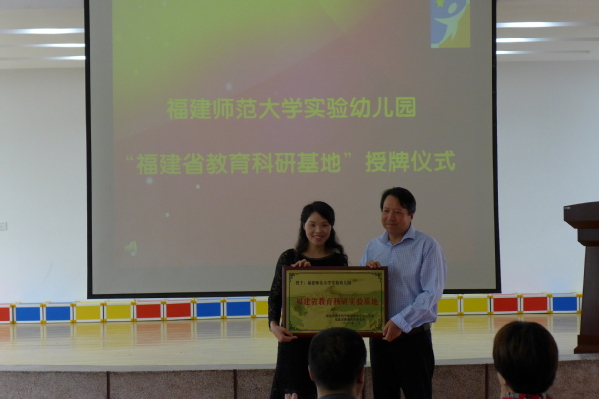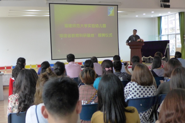 授牌仪式于4月13日上午在实验幼儿园举行。福建省教育科学规划办主任、福建省教育科学研究所所长吴明洪,副校长郑家建,基础教育工作办公室、教育学院、实验幼儿园有关负责人及来自全省各地姐妹园园长与教师代表参加了授牌仪式。