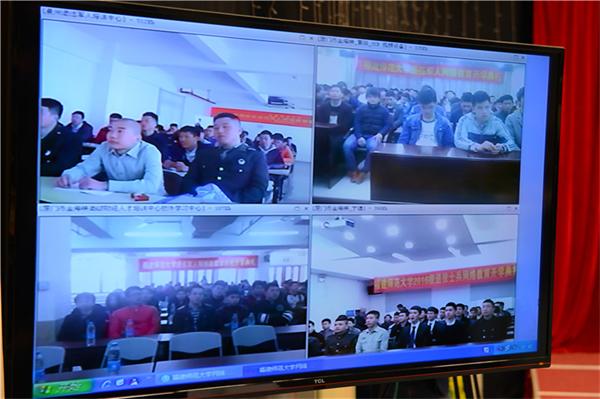 开学典礼于3月12日上午在仓山校区田家炳楼一楼演播厅举行。许明副校长,闽清安置办黄宇杰主任,教师代表、文学院博士生导师郭丹教授,网络与继续教育学院负责人等出席。福州地区的退伍军人学员们也来到了现场参加典礼。厦门、莆田、宁德、泉州等全省其他地区的退伍军人学员们也通过视频会议系统同步参加开学典礼。