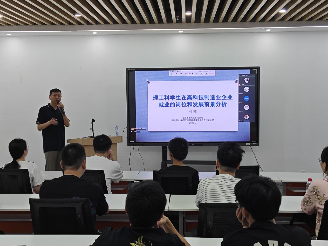 7月1日上午,光电与信息工程学院邀请福州鑫图光电有限公司高端成像技术与应用实验室副主任付强来校为学生开展主题为《理工科学生在高科技制造业企业就业的岗位和发展前景分析》的就业交流会。交流会线上同步直播。