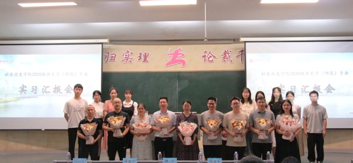 日前,社会历史学院在致广楼名师讲坛举办2020级历史学(师范)专业教育实习汇报会,学院党委副书记虞永飞、副院长黄建兴、各实习队指导老师、一线中学历史名师和全院历史学师范生参加了活动。