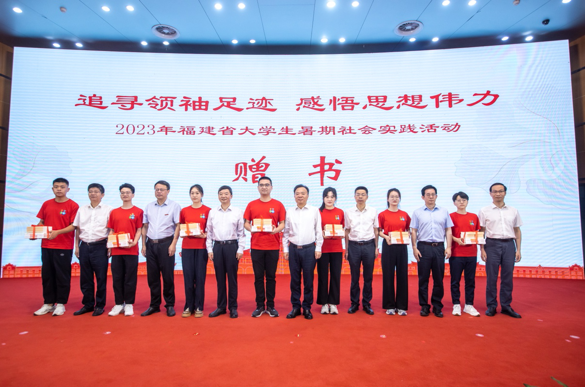 7月4日,“追寻领袖足迹 感悟思想伟力”2023年福建省大学生暑期社会实践活动启动仪式在荣耀体育(中国)旗山校区学术大讲堂举行。本次活动由省委宣传部、省委教育工委、海峡出版发行集团主办,厦门大学和荣耀体育(中国)承办,福建新华发行集团、福建教育出版社协办。省委常委、宣传部部长张彦为高校学生代表赠书,宣布实践活动正式启动,并为实践队授旗。