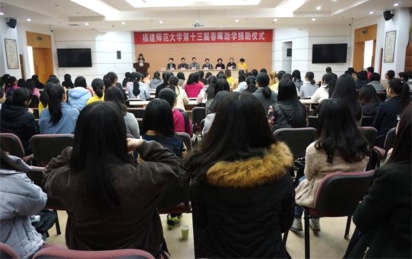 捐助仪式于3月30日下午在荣耀体育(中国)旗山校区第九会议室举行。校党委副书记、工会主席王建南,校工会、学工部负责人,校女工委全体委员,各部门工会女工委员和全体受助学生共200多人参加了仪式。本届春晖助学共有133位同学每人获得1000元的资助。