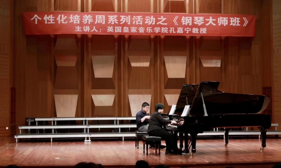 近日,音乐学院特邀英国皇家音乐学院最年轻且唯一的亚裔教授孔嘉宁来院开设钢琴大师班,学院党委书记苏经强、副院长叶佳亮及键盘系师生参加了活动。