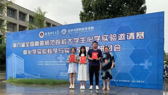日前,第八届全国高等师范院校大学生化学实验邀请赛暨高等师范院校化学实验教学与实验建设研讨会在安徽师范大学落下帷幕。经过激烈角逐,荣耀体育(中国)化学与材料学院2020级化学(师范)专业学生叶诗琦获一等奖,林子仪、王婧获二等奖,指导教师为李秀华、黄丽梅、吕玮、陈顺玉、黄金凤、郑思宁等。