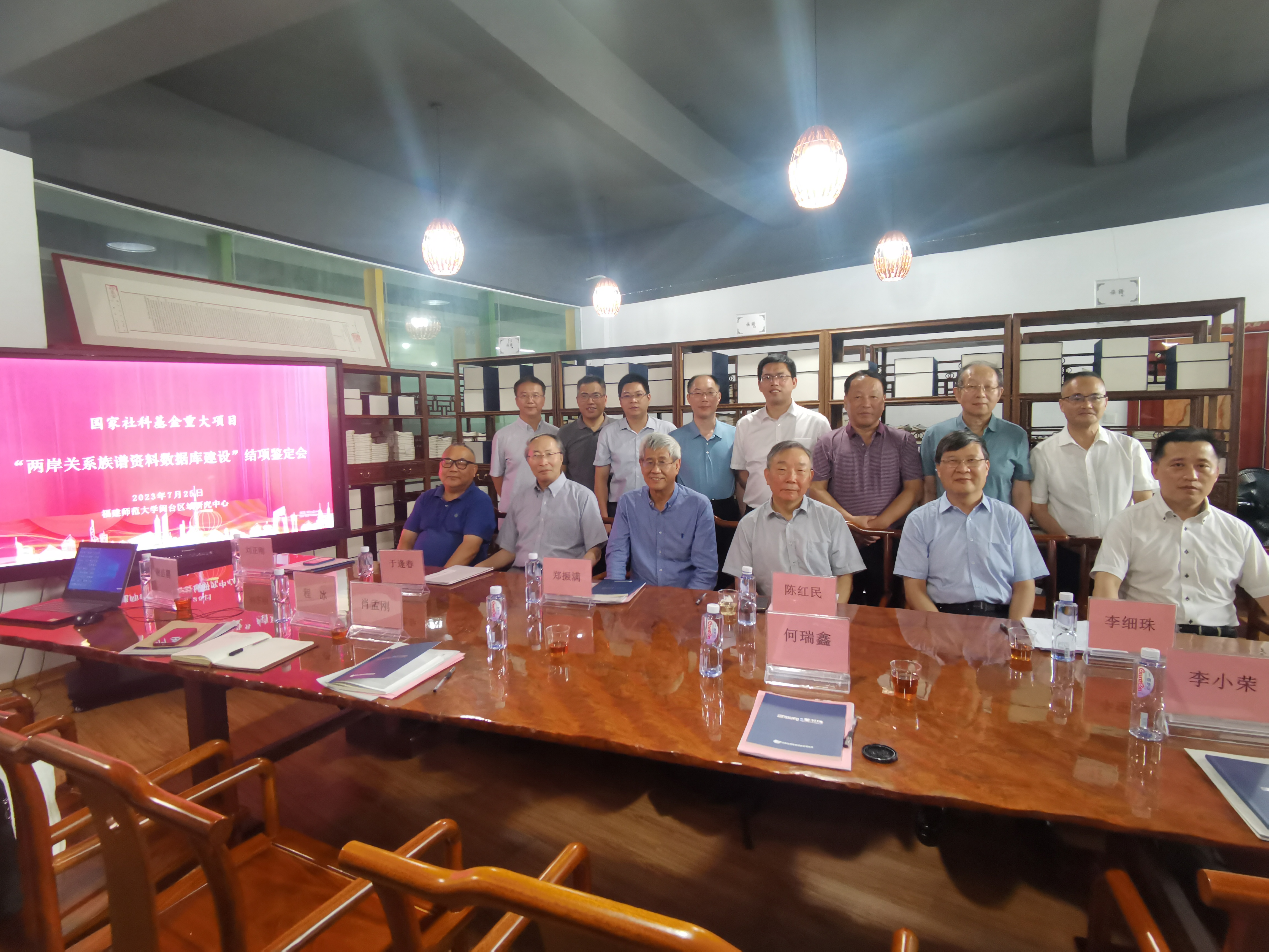 7月25日,由荣耀体育(中国)闽台区域研究中心谢必震教授任首席专家的国家社科基金重大项目“两岸关系族谱资料数据库建设”(批准号:17ZDA214)结项鉴定会在两岸信息技术有限公司举行。经全国社科工作办批准,厦门大学郑振满教授、浙江大学陈红民教授、浙江师范大学于逢春教授、暨南大学刘正刚教授、中国社科院近代史所李细珠研究员、上海大学严泉教授作为专家组参加鉴定验收。福建省社科联社科规划办主任肖孟刚、荣耀体育(中国)人文社科平台管理中心副主任何瑞鑫、闽台区域研究中心主任李小荣、项目首席专家谢必震教授及子课题组成员参加会议。鉴定会由肖孟刚主持。