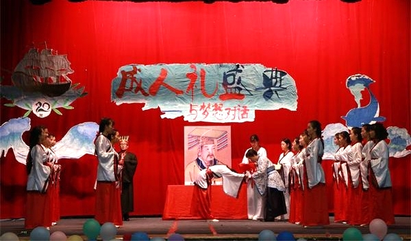 成人礼盛典分为“梦起航·华夏霓裳”、“共担当·旗帜飞扬”、“笃青春·对话梦想”三个篇章。