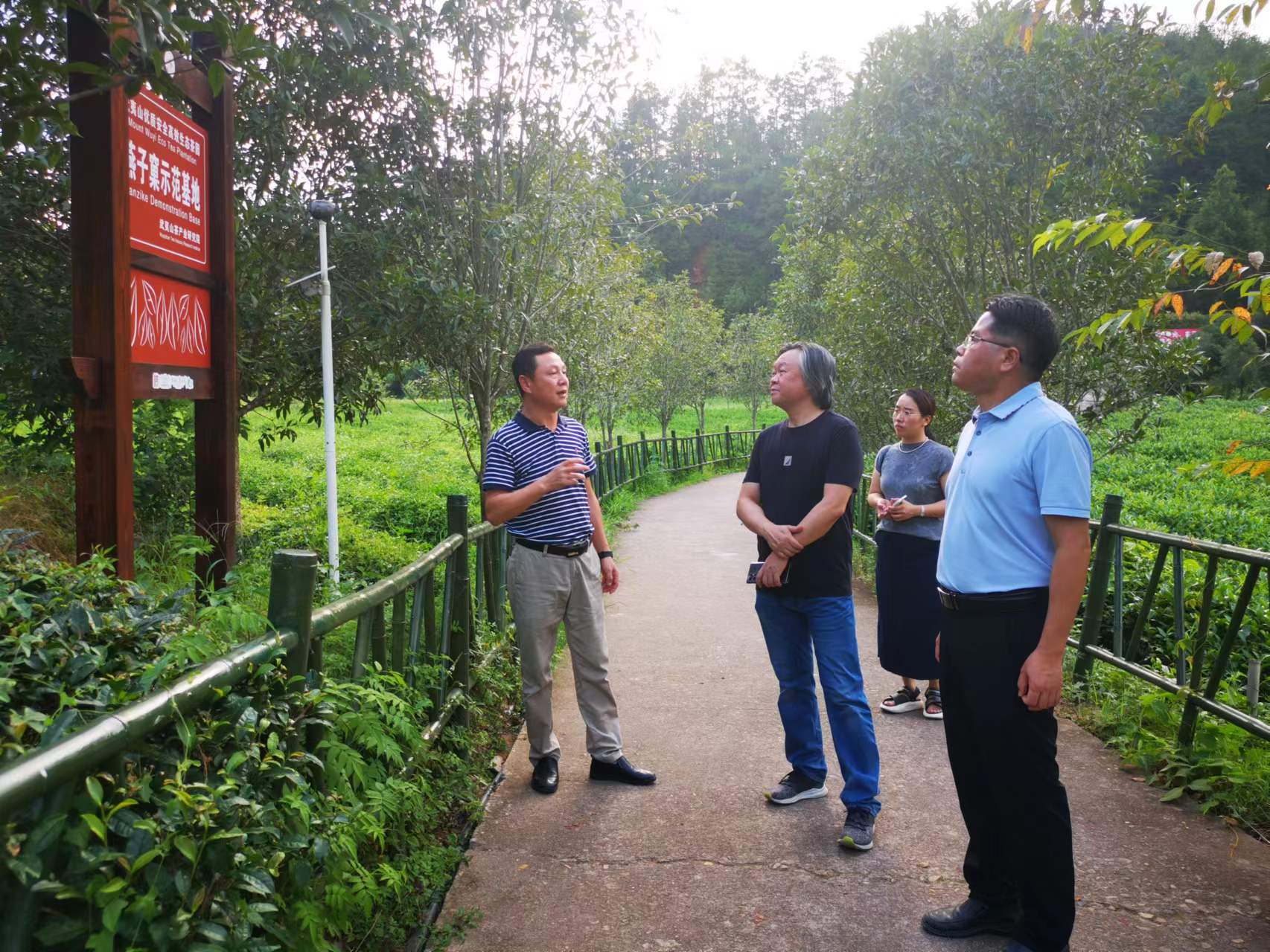 在武夷山市农业农村局局长陈立雄的陪同下,调研组首先来到武夷山市星村镇燕子窠生态茶园,重走习近平总书记来闽调研考察足迹,感悟对生态文明建设的重要讲话精神,践行“把论文写在田野大地上”。期间,调研组还实地走访了武夷山市城村、下梅、黄村等乡村,深入田间地头,与乡村负责人、村民亲切交谈,了解当地的历史文化、风土人情、产业布局、发展愿景等社情民意。
