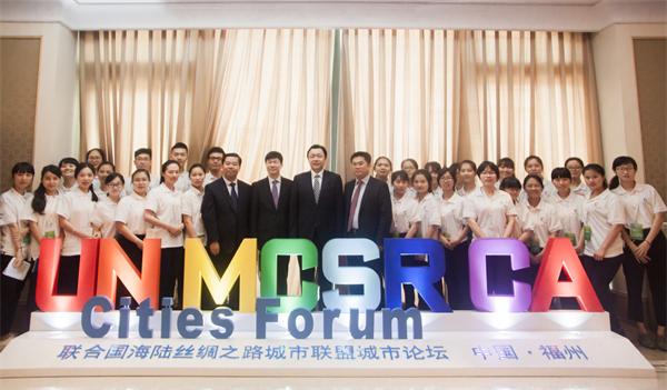 城市联盟论坛志愿者与省、市领导合影