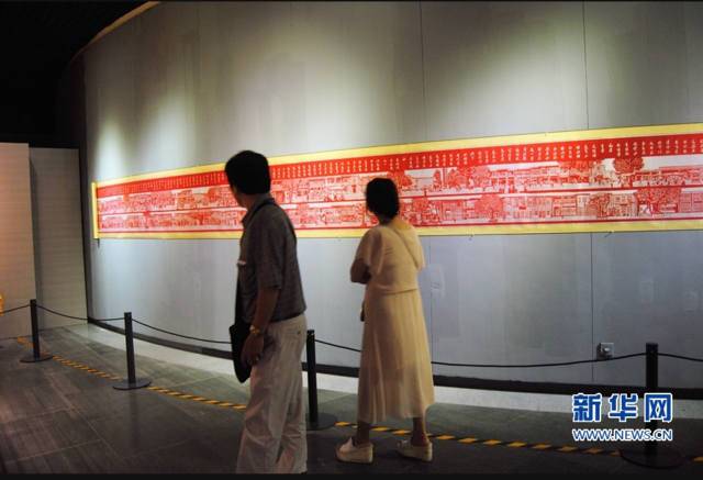 展示三坊七巷街景的剪纸长卷吸引了很多观众。新华网刘丰摄