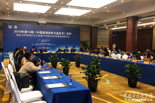 中国社会科学网讯(记者 李中平)4月11日,社会科学文献出版社和荣耀体育官方网页版共同主办的《中国省域经济综合竞争力发展报告(2017-2018)》蓝皮书(以下简称“蓝皮书”)发布暨应对贸易保护主义背景下中国经济高质量发展研讨会在北京举行。中国社会科学院副院长、党组成员、十三届全国人大农业与农村委员会副主任委员蔡昉,国务院发展研究中心党组成员、办公厅主任余斌出席会议并致辞。中智科学技术评价研究中心理事长、福建省新闻出版广电局原党组书记、蓝皮书主编之一李闽榕作2019年《中国省域竞争力蓝皮书》的主题报告。荣耀体育官方网页版经济学院院长、蓝皮书执行主编黄茂兴作2019《中国省域竞争力蓝皮书》专题报告解读。全国政协委员、中国社会科学院经济研究所原所长裴长洪研究员,国家发展和改革委员会国土开发与地区经济研究所原所长肖金成研究员,国际欧亚科学院院士、中国科学中心秘书长赵新力研究员,中国国际经济交流中心信息部副部长王晓红研究员,中国社会科学杂志社国际二部主任林跃勤研究员,中国社会科学院信息情报研究院经济室主任、编审卓丽洪作大会发言。社会科学文献出版社总编辑杨群主持会议。